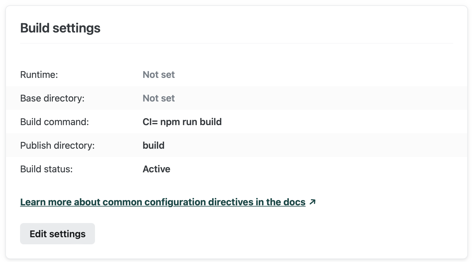 참고한 블로그에서 보니 Build settings에서 CI= false npm run build로 쓰랬는데