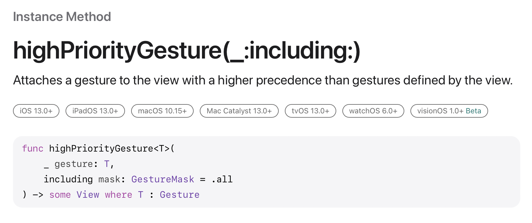 highPriorityGesture(_:including:) | Apple Developer Documentation