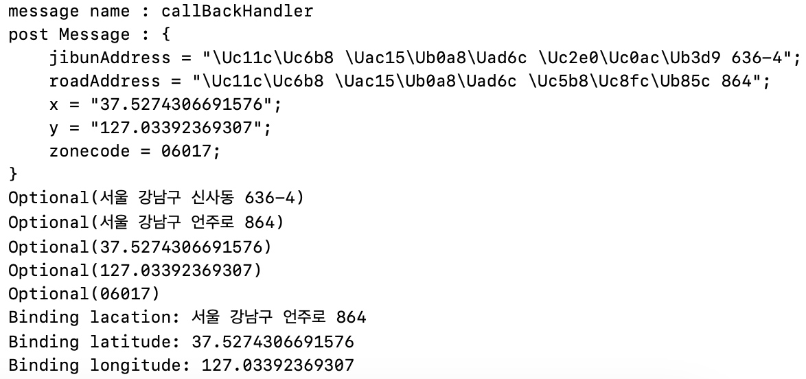 | [SwiftUI] 다음(kakao) 주소찾기 part.2 (WKWebView, Sheet사용하기, Binding) (1) | 2023.10.19 |