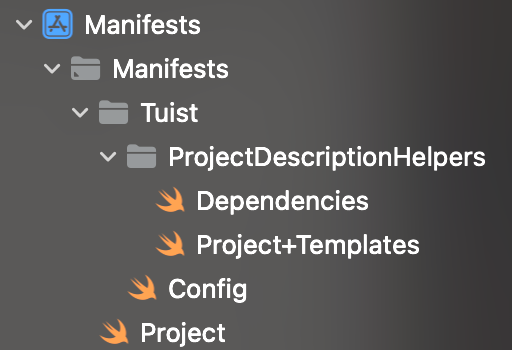 이번에는 Tuist파일의 하위(Config와 동일한 디렉토리)에 Dependendies를 만들어야 한다.