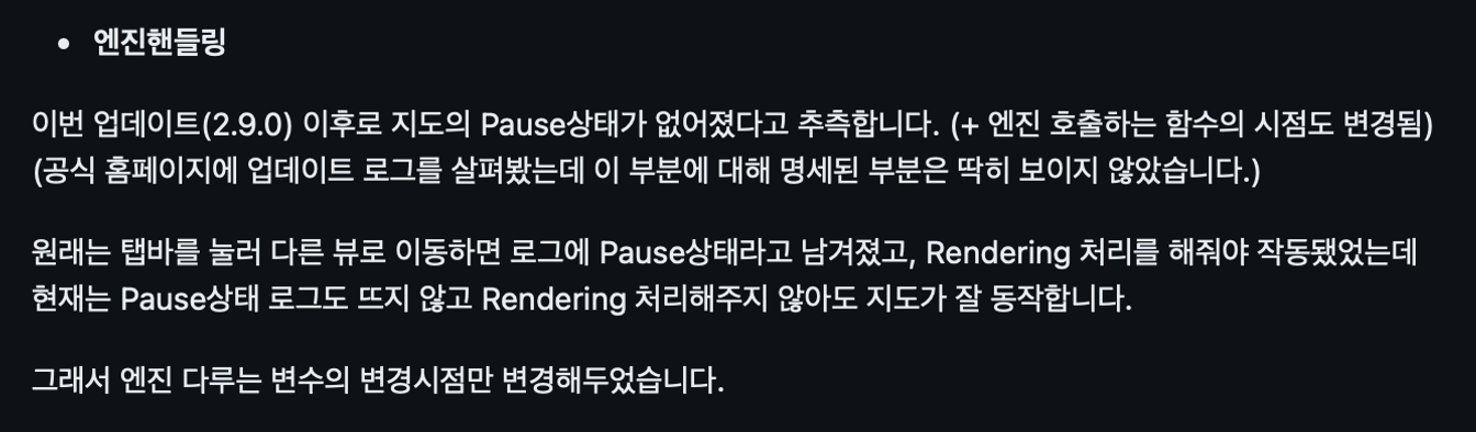 당시 패치노트에 별 내용이 없어서 위의 내용을 추측할 수 밖에 없었는데,회고 중 궁금해서 2.10.x 버전 확인하니 카카오 측에서 확실히 엔진이 불편하다는 것을 인지하고 있었던것같다!