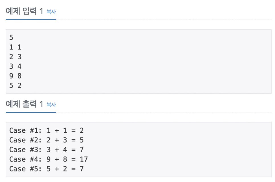printf("Case #%d: %d + %d = %d\n",i,a,b,a+b);