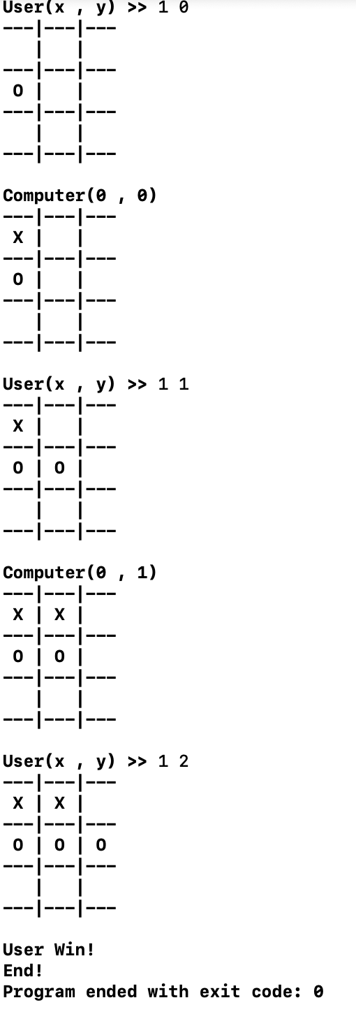 가장 간단하게, 컴퓨터가 왼쪽에서 오른쪽, 위에서 아래 순서로 x표기하여 게임을 진행하는 알고리즘