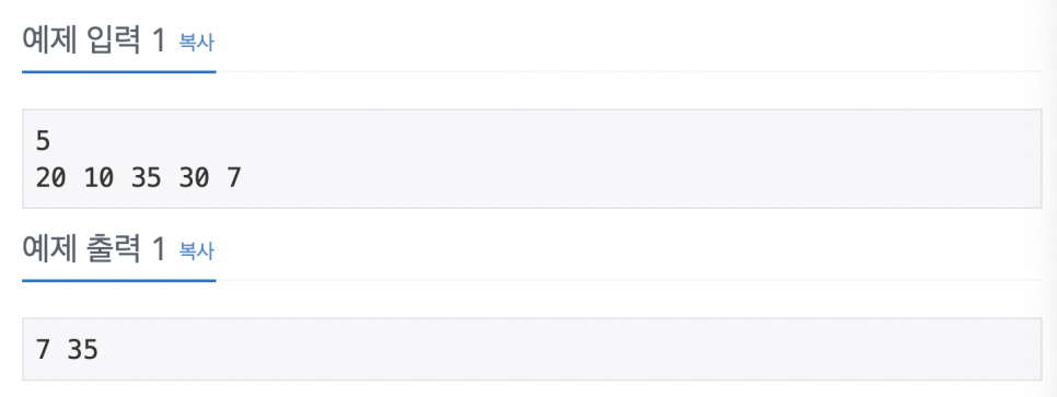 printf("%d %d\n",min,max);