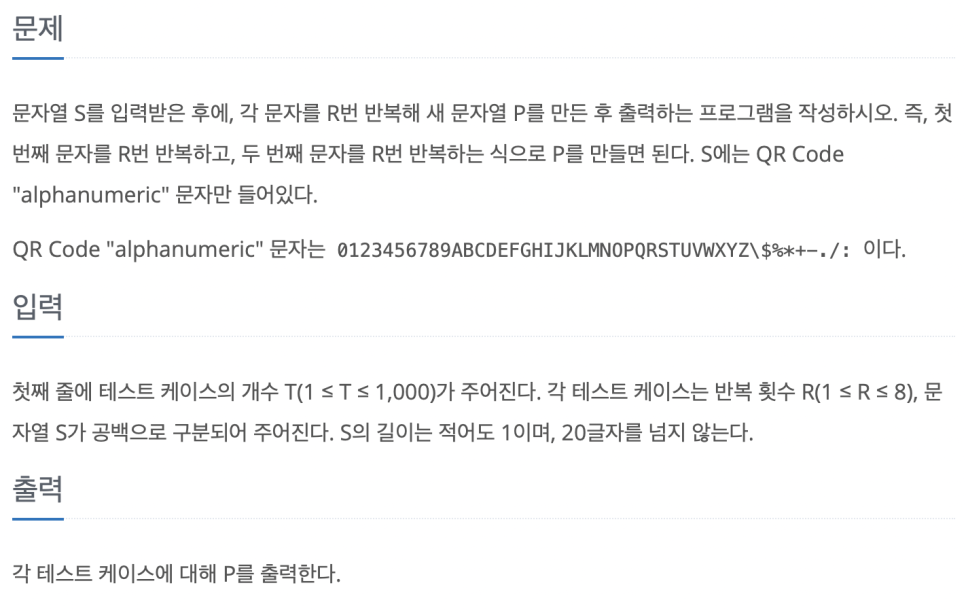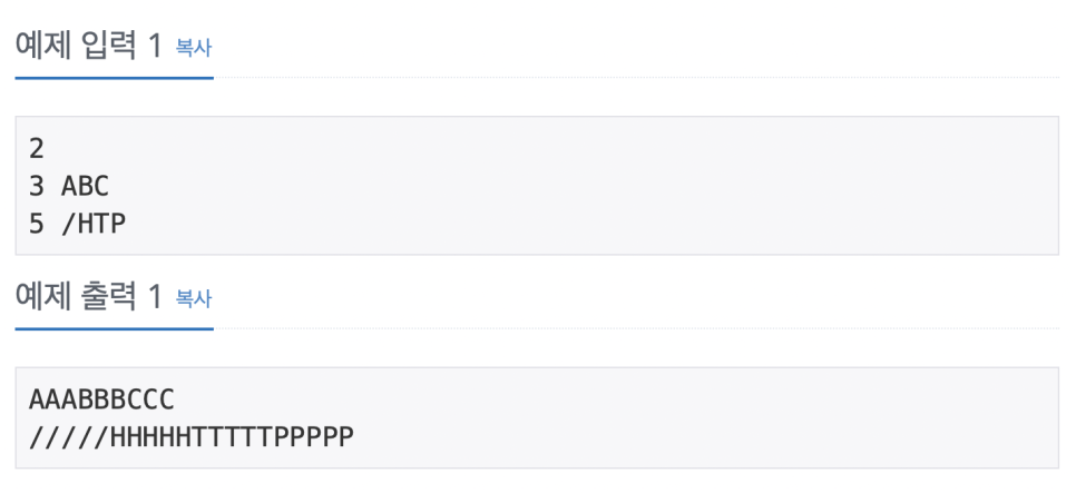 printf("%c",str[j]); // 각 문자를 repeat만큼 반복