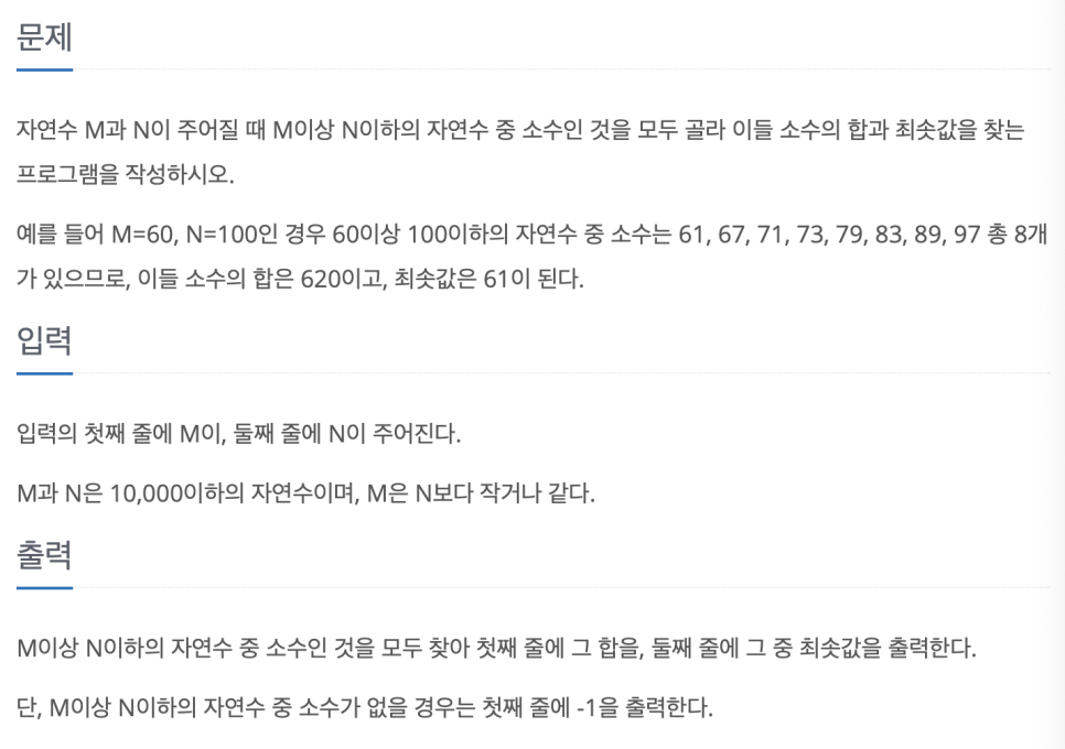 for(int i=M; i<=N; i++){ //검열할 숫자
