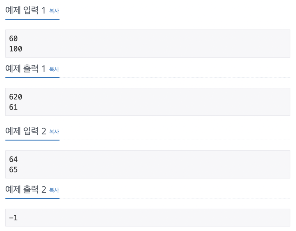 if (sum>0)printf("%d\n%d\n",sum,min);