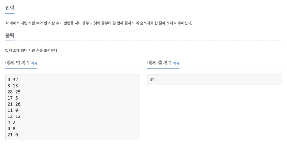 num-=arr[i][0]; //내린사람
